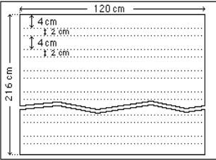 A primeira etapa na sua confecção (ilustrada pela figura 1) consiste em marcar com uma régua, de maneira rigorosa, as zonas de dobragem, de modo a obterem-se pregas rigorosamente paralelas e uniformes, de acordo com as medidas indicadas: 4 cm + 2 cm., sucessivamente.
